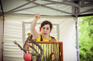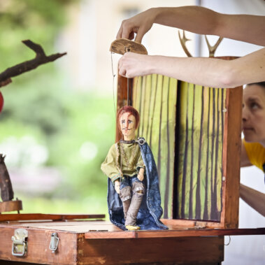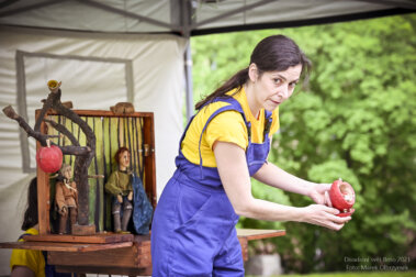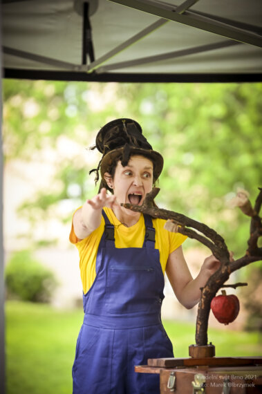 Jedna jabloň, jeden král, dvě holubice, dvě svatby a jedno velké prokletí – dokáže statečný král zachránit svou jabloňovou lásku? Loutkový příběh na motivy pohádky Jabloňová panna od K. J. Erbena.