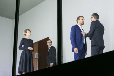 Antický příběh o vzestupu a pádu, o pýše, která volá do nebe a pobuřuje bohy. Slavné a až notoricky známé Sofoklovo drama o králi, který při pátrání po vrahovi odhalí vlastní vinu. V podání Residenztheateru svižná chladně elegantní a překvapivě aktuální inscenace tematizuje moc, způsob, jakým ji lze získat, udržet a nakonec také ztratit.